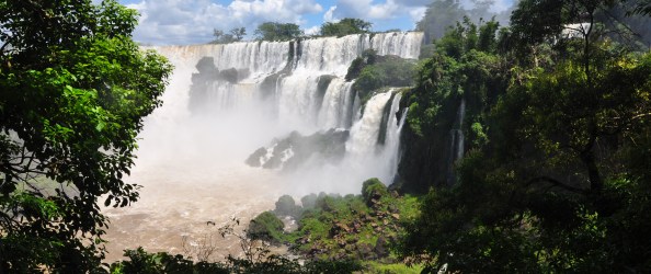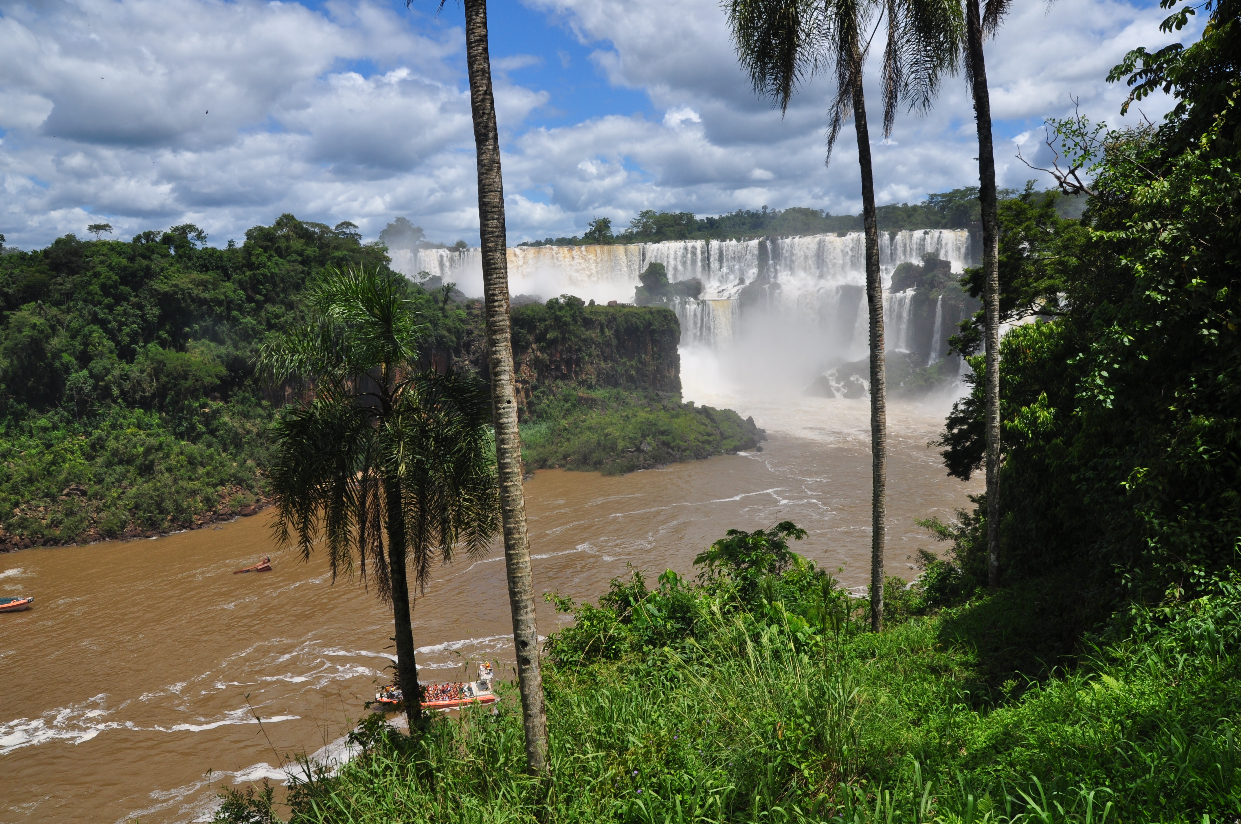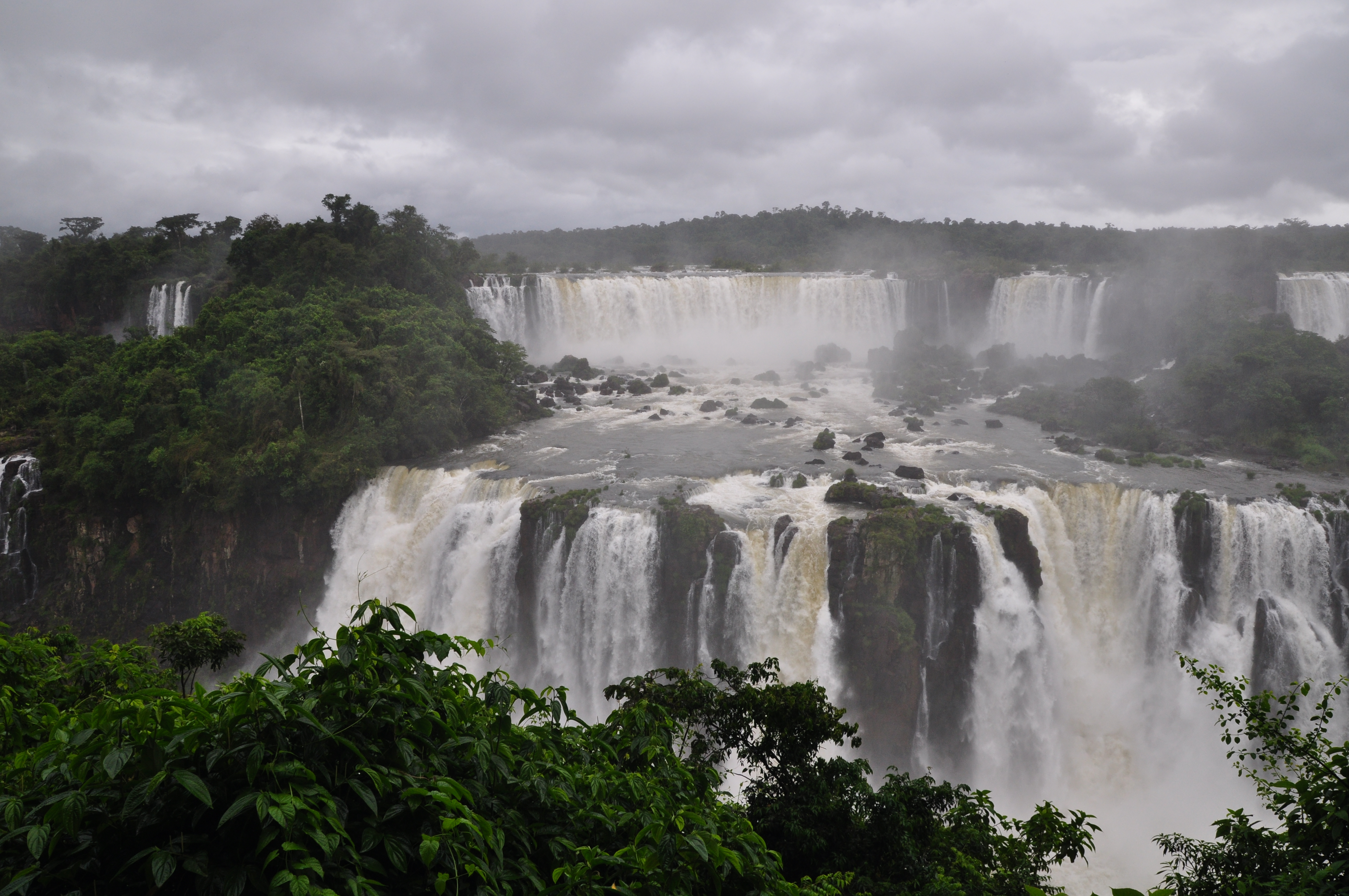 Inscrit au patrimoine mondial de l’Unesco, le parc naturel d’Iguazu qui s’étend entre Argentine et Brésil, n’en reste pas moins un ilôt protégé face à la folie destructrice. Il y a bien sûr l’immense arc de cercle des chutes, étendu sur près de trois kilomètres, faille géologique monstre qui s’étend du double à chaque point de vue lorsqu’on longe la rive brésilienne, comme si elle ne voulait jamais finir. Les eaux caramel de l’Iguazu (nom qui signifie « grandes eaux »dans la langue des indiens guarani, habitants historiques des lieux) ramifié en canaux s’effondrent ici en plus de 200 chutes, l’eau tombe par centaine d’hectolitres à la seconde. Le roulement sourd gronde en continu, métronomique et presque industriel.
